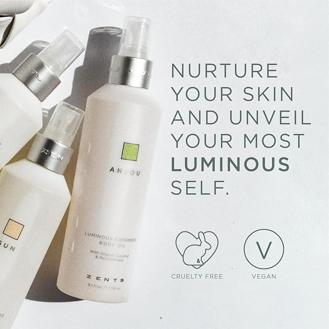 Zents Luminous Cashmere Body Oil (Earth Fragrance) | Moisturizing Body Oil with Vitamin E & Organic Coconut Oil | Softens & Smooths Skin | 8 fl oz