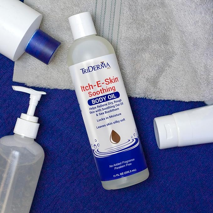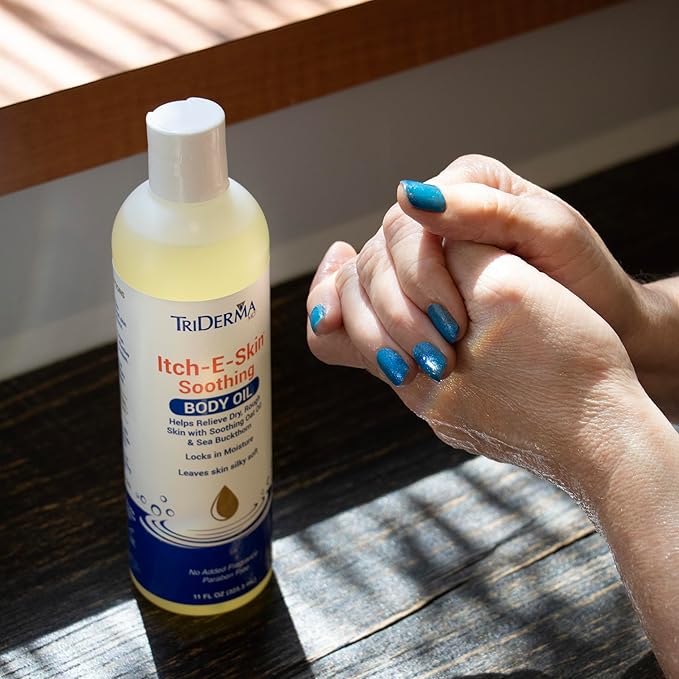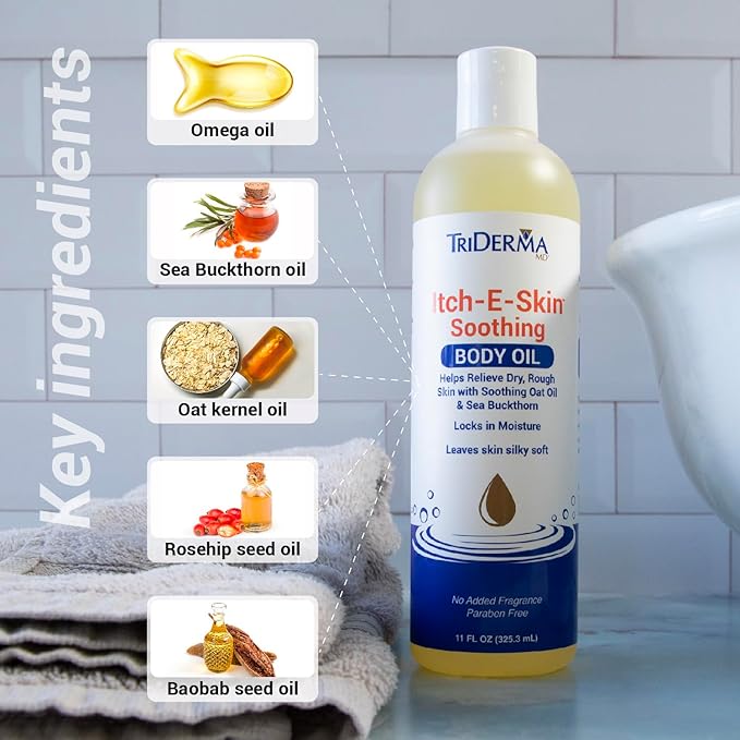 Itch-E-Skin Soothing and Moisturizing Body Oil with Sea Buckthorn Oil, Rose Hip Oil, Oat Oil to Relieve Itchy Skin, Non-Greasy Dry Body Oil, 12 ounces