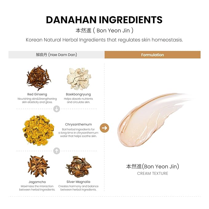 - Danahan Bon Yeon Jin is made with a powerful skin-rejuvenating formula of high-quality Red Ginseng and natural Korean natural herbal medicine to hydrate, nourish, and visibly rejuvenate skin.