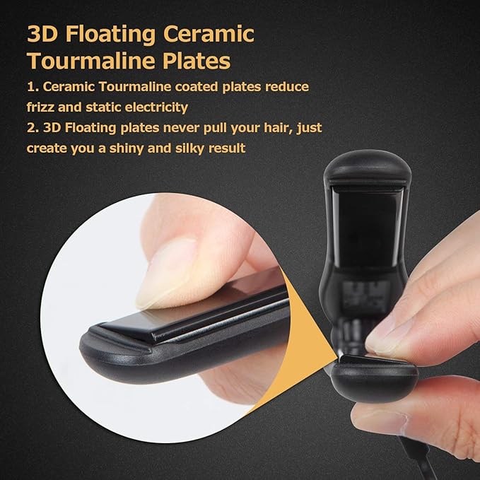 - [3D Ceramic and Tourmaline] The small flat irons for short hair uses advanced PTC ceramic heating technology for even heating. The 3D floating plates crafted from tourmaline ensure zero sticking or pulling, and release negative ions to smooth hair and eliminate frizz. Note: This mini straightener is fixed-temperature and not adjustable.