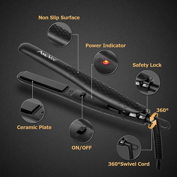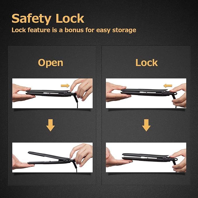 - [Compact and Portable] Mini hair straightener is only 0.7 inches wide and weighs only 0.35 pounds. This mini flat iron for short hair features a safety lock for extra storage space. The compact size makes it easier to store than regular travel hair straightener, making it an ideal travel choice.