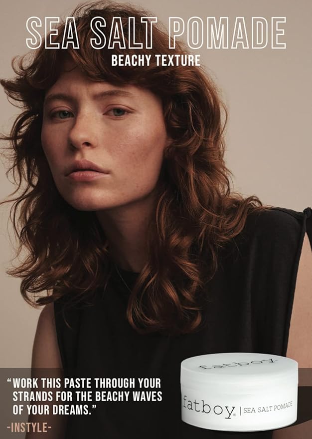 Fatboy Sea Salt Hair Pomade with Coconut Oil & Shea Butter, Lightweight Hold for Texture, Styling & Shine, Tousled Beach Waves Finish, Hair Care for All Hair Types, Paraben Free, Color Safe, 2.6 Oz