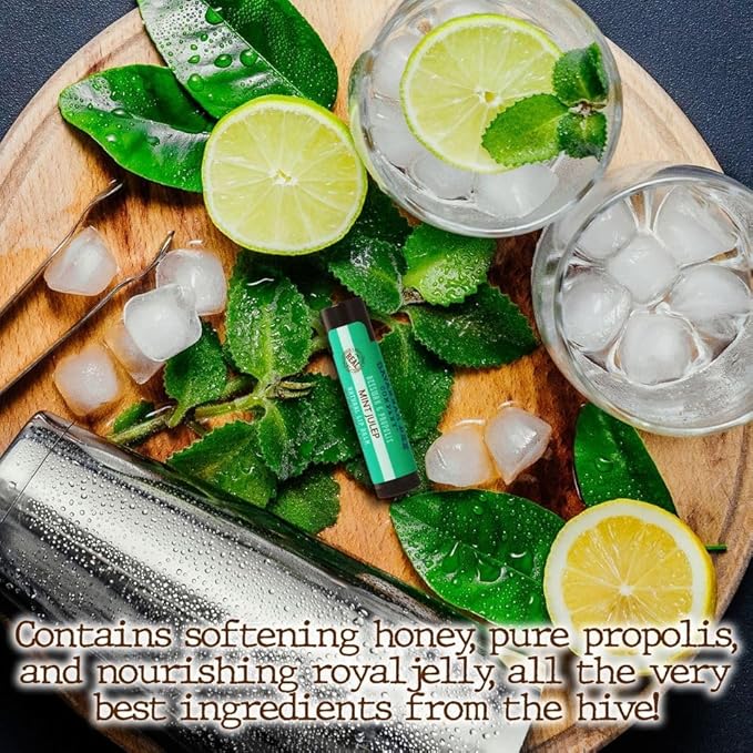 - ORGANIC BALM - This organic lip balm contains natural ingredients like coconut oil, olive oil, pure propolis extract, cacao butter, honey extract, and royal jelly that help repair damaged dry lips.