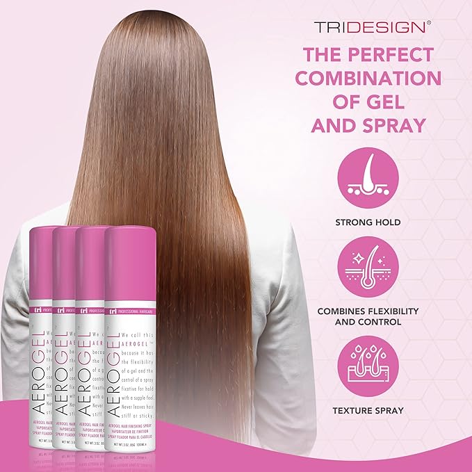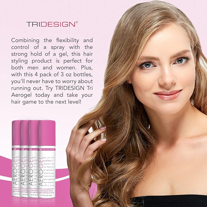 - TRAVEL-FRIENDLY SIZE: Our TRI Design Aerogel's 3 oz hairspray is the perfect travel companion. Compact and convenient, it fits easily into your bag or carry-on, ensuring you can maintain your sleek style on the go without any hassle.