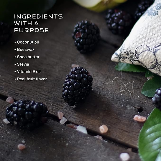 - INGREDIENTS - Organic coconut oil, organic beeswax, organic shea butter, organic natural fruit flavor, organic stevia, non-GMO vitamin E oil (sunflower)