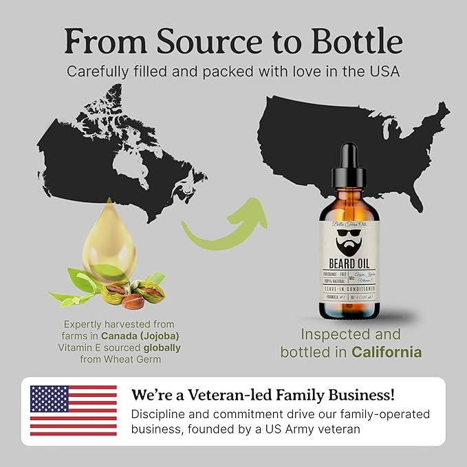Bella Terra Oils - Beard Oil 8oz - A Luxurious Blend of Natural Organic Vitamin E, Organic Jojoba & Argan Oils, The Ultimate Beard Softener, Vintage Elegance in Every Drop