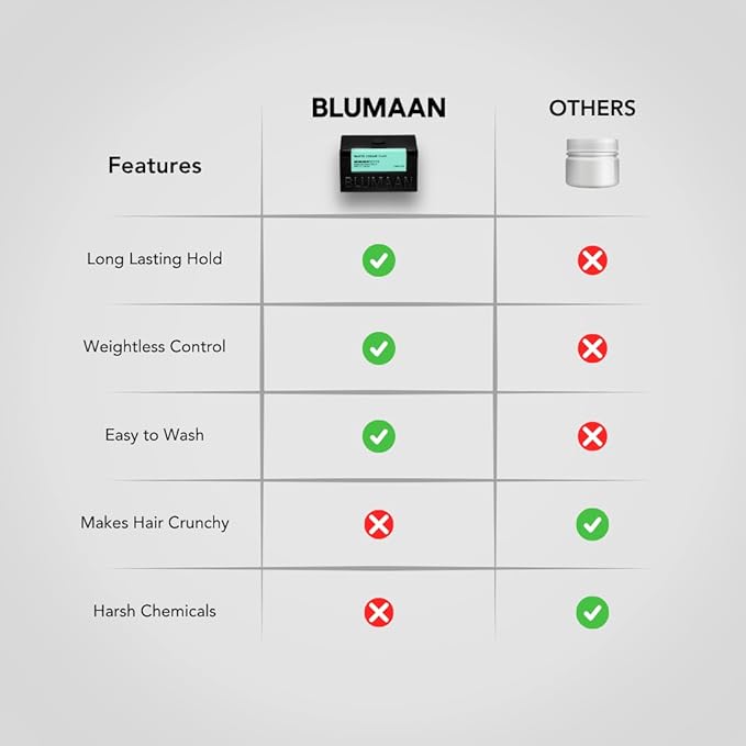 - SMOOTH APPLICATION WITHOUT TUGGING OR PULLING: BLUMAAN’S Matte Cream Clay is set to become your staple hair product. It’s effortless to use and has minimal tugging/pulling. It’s easy to wash out too!