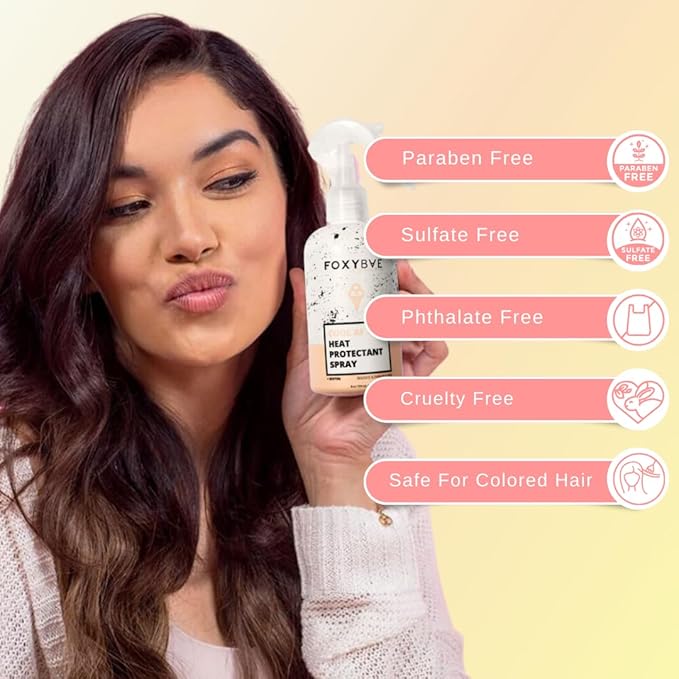 - Up to 400°F Heat Protection For Hair: Foxybae heat protectant spray prevents damage from blow drying, flat ironing & the sun. This hair protectant spray from heat is also a natural sunscreen, offering color-safe protection and sealing in moisture.