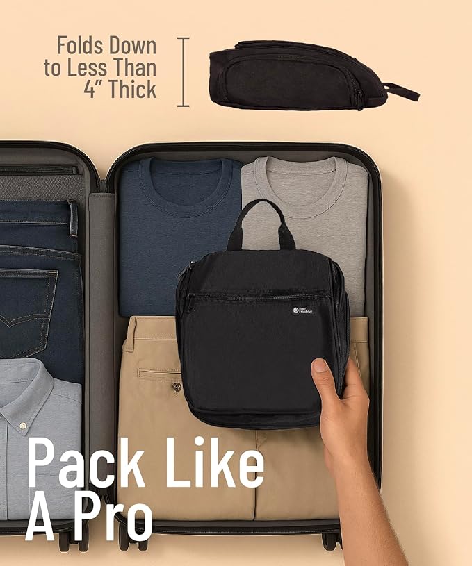 - Convenient Hanging Hook: The XXL metal swivel hook allows you to hang the bag anywhere, saving valuable counter space. It's perfect for use in hotels, bathrooms, or even on a camping trip.