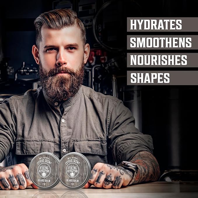 Viking Revolution Citrus Beard Balm - Beard Butter with Argan Oil, Beard Softener for Men with Jojoba Oil - Beard Moisturizer for Men with Beeswax - Beard Wax for Men with Mango Butter (2oz, 2 Pack)