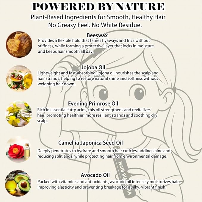 - 【Sleek and Smooth】 This hair smoothing stick offers a moisturizing effect, leaving your hair shiny and smooth. It effectively tames flyaways and frizz, making it the perfect Flyaway Tamer for maintaining a neat, professional hairstyle