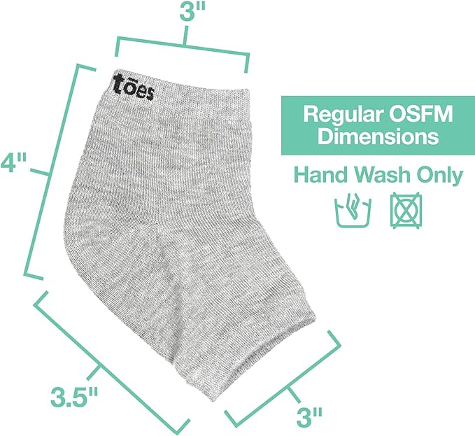 - Choose Your Size - Our Regular (OSFM) heel treatment socks are designed for an average foot width and shape. If you have a wider foot, fuller calves or swollen areas, choose our Wide Width version, which offers extra room for a more comfortable fit. When in doubt, opt for the wider size to avoid tightness. Rest comfortably while your heels soak in the moisturizing benefits.