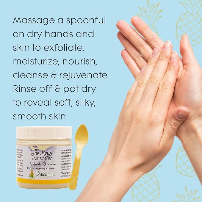 The Keys Salt Scrub -Sea Salt Scrub - Exfoliating Body Scrub with Wooden Spoon - Moisturizing Exfoliator for Hands, Foot, Bath, (3.4 Ounce (Pack of 1), Pineapple)