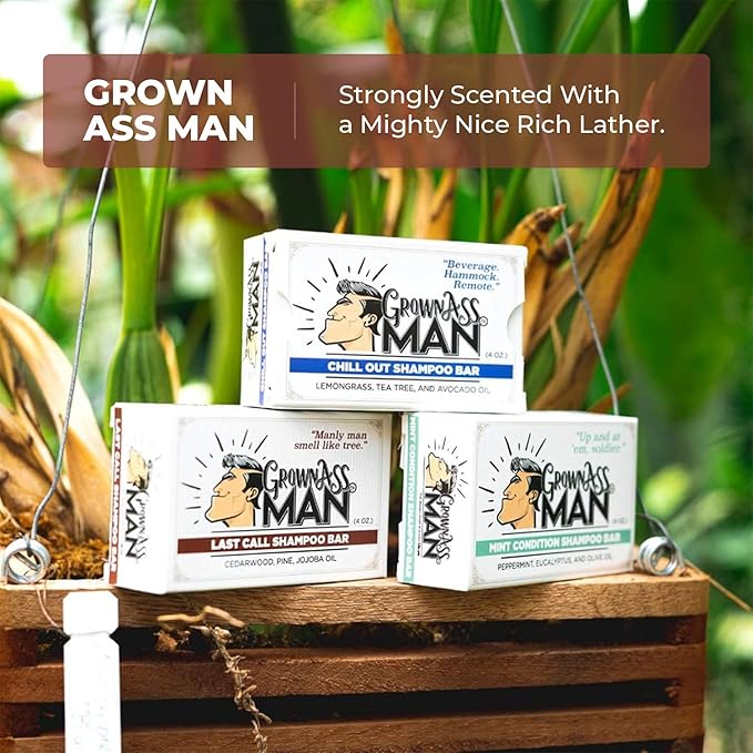 - STRONGLY SCENTED WITH A MIGHTY NICE RICH LATHER. We want you to smell good all day, and, after all - you're a man and you might not even notice unless we made it strong. The rich lather makes sure that the fine ingredients we build into every Grown Ass Man Co., Shampoo bars reach all of your hairs and your scalp. Lather has a purpose? Oh yes. Yes it does.