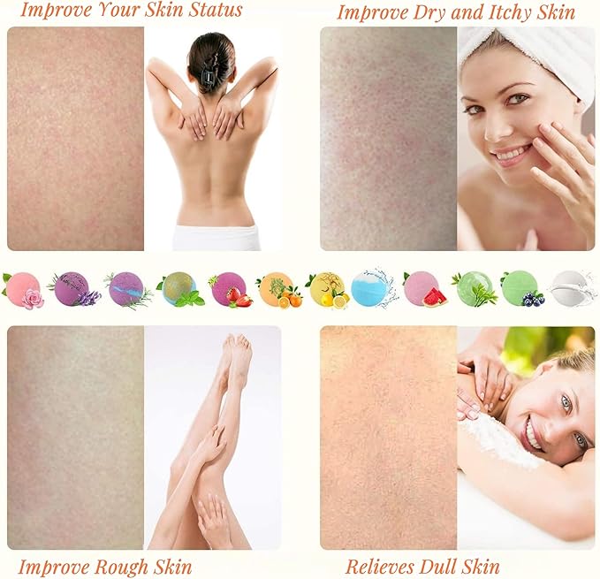 - 【Moisturizing & Improving Skin Care】All ingredients are made of natural organic essentials, free of any toxic chemicals. It’ll not only cleanse your skin, but also exfoliate the old. Make your skin feel velvety, sinuous, and youthful.Essential oils added, no matter what your skin type, the beneficial ingredients in bath bombs leave it soft, supple, and silky