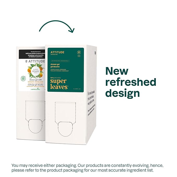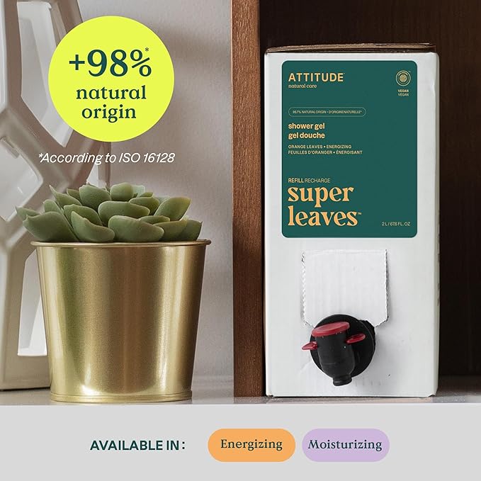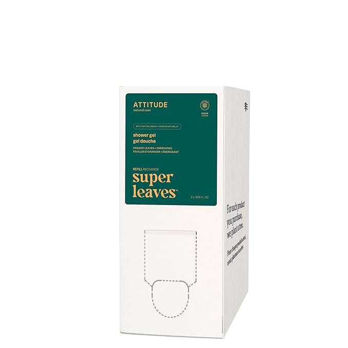 ATTITUDE Body Wash, EWG Verified Shower Gel, Dermatologically Tested, Plant and Mineral-Based, Vegan Personal Care Products, Orange Leaves, Bulk Refill, 67.6 Fl Oz