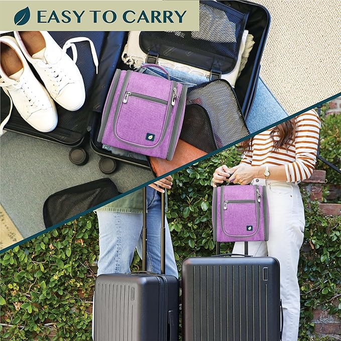 PAVILIA Toiletry Bag Travel Bag for Women Men, Hanging Cosmetic Organizer, Water Resistant Makeup Bag for Accessories Toiletries, Large Travel Essentials Kit (Purple)