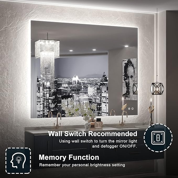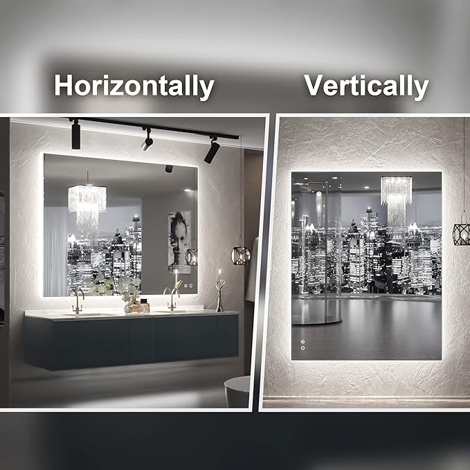 - ✨【Perfect bathroom mirror】-U.S Design Environmental Friendly,Copper free HQ Silver coating glass with IP54 waterproof LED ensures 100% safety in wet bathroom.