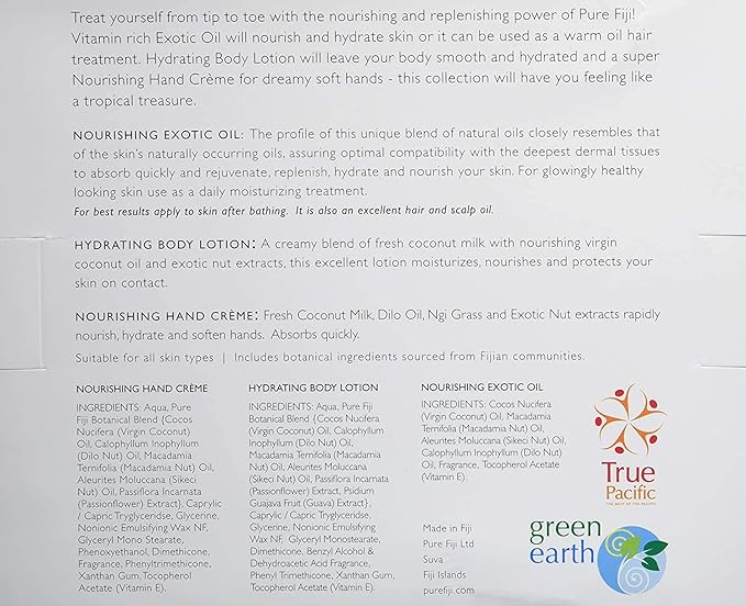 Pure Fiji Nourishing Trio, Ideal Spa Bath Gift Set for Women - Travel Kit - Includes Exotic Body Oil, Hydrating Body Lotion For Women and Nourishing Hand Cream, Guava Scent