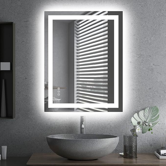 - [Double Lights & Super Bright]: With two built-in LED strip lights, Amorho LED bathroom mirror with front light and backlit both; The lighting is bright enough for makeup or shave or beauty care in your space