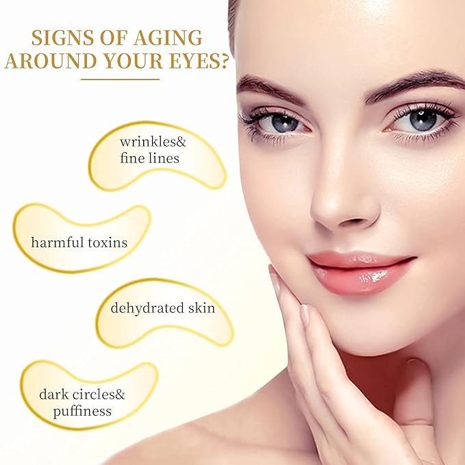 - EASY TO USE 24K GOLD EYE PATCHES: The eye pads for puffy eyes and dark circles are really easy to use, After washing your face and drying it, please put the under-eye patches on. You can do anything you want such as watching tv, playing games, talking with your friend. About 15-20 minutes you can put them off.