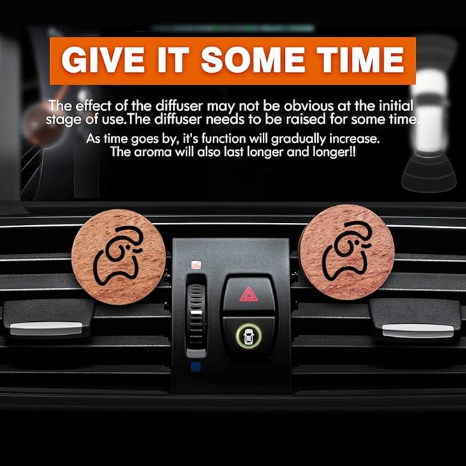 - DRIP YOUR ESSENTIAL OIL ON THE TOP: No need to Loosen the cover. Just drip 4 drops of your favorite essential oil on top of the wood and wait for the essential oil to be absorbed, then clip it on the exhaust hole of car air conditioner by the vent clip. Then you will smell the scent of your favorite essential oil in the car. Because of made of wood, when you want to tighten the lid, please do not be too hard.
