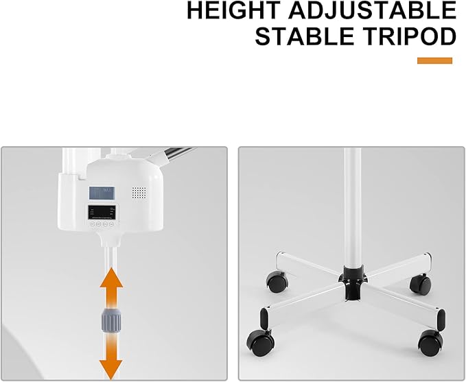 - ROTARY AND MOVEABLE - 360 degree rotary spray pipe allows to moisturize your face when you are sitting or lying; Rolling wheels makes it convenient to move this facial skin care machine around the room