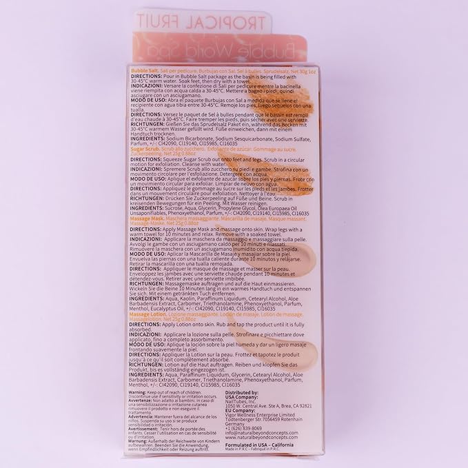 - ๐ฅญ[Package Includes]: Exfoliating Foot Spa Pedicure Kit consists of Bubble Salt, Sugar Scrub, Massage Mask, and Massage Lotion for a 4-step foot spa at home. Formated to be gentle on the skin, you are sure to feel your skin feeling soft and supple after use.