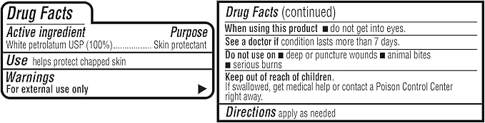 - Moisturizes skin and helps protect chapped skin and lips, minor cuts, scrapes and burns
