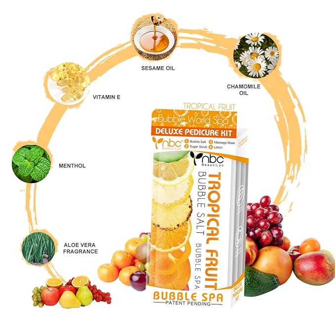 Pedicure Kit Foot Soak Set: Bubble Salt, Sugar Scrub, Massage Mask, Massage Lotion in a Box, 4 Step Foot Spa Kit for Dry Feet,Tired Feet(3 Set Tropical Fruit)