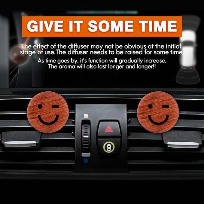 - PACKAGE INCLUDING: 2PCS Rosewood Smile Shaped Car Essential Oil Diffusers (G-Type)(This product does not contain essential oils). Notice: The wood car diffuser has no fragrance, so whether the essential oil fragrance can last depends entirely on the quality of the essential oil.