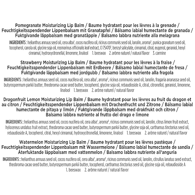 - MOISTURIZING GIFT SET: Everything you need for naturally beautiful lips, Burt’s Bees Moisturizing Lip Balm comes in four flavors: Strawberry, Dragonfruit Lemon, Pomegranate and Watermelon
