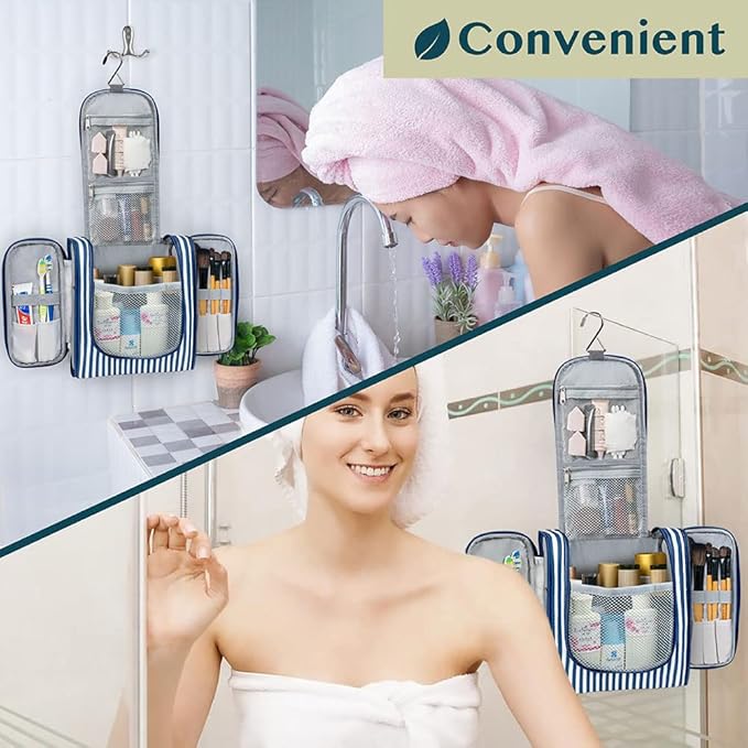 - COSMETICS TRAVEL BAG ORGANIZER: This toiletry bag for women has a hanging hook and multiple pockets that help you stay organizer during business trip, vacation travel. The hanging hook makes it easy to hang the toiletry bag to bars in the hotel shower bathroom. Unzip your toiletry bag to reveal compartments to organize your shampoo, skincare face hygiene products. This toiletry travel bag is an essential accessory for cruise in Europe, plane, Hawaii Trip, and honeymoon.