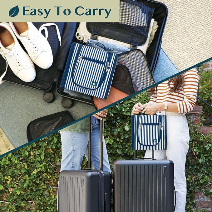 PAVILIA Toiletry Bag Travel Bag for Women Men, Hanging Cosmetic Organizer, Water Resistant Makeup Bag for Accessories Toiletries, Large Travel Essentials Kit (Stripe Navy)