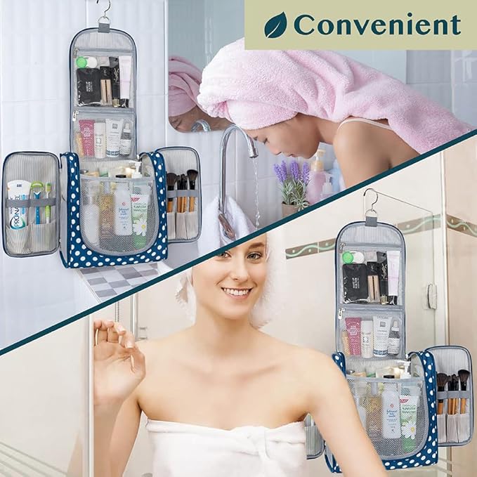 - EASY TO CLEAN: Simply wipe clean with damp cloth to maintain the toiletry bag travel bag. With its water resistant polyester fabric and waterproof compartment, this travel kit for women keeps your travel-size item, shampoo, conditioner, lotion, face wash, medicine, toothpaste, toothbrushes, hair brush and daily makeups protected and organized for every trip, cruise, flight! A must have for every travel packing list!