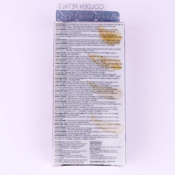 Pedicure Kit Foot Soak Set: Bubble Salt, Sugar Scrub, Massage Mask, Massage Lotion in a Box, 4 Step Foot Spa Kit for Dry Feet,Tired Feet (1 Set Golden Petals)