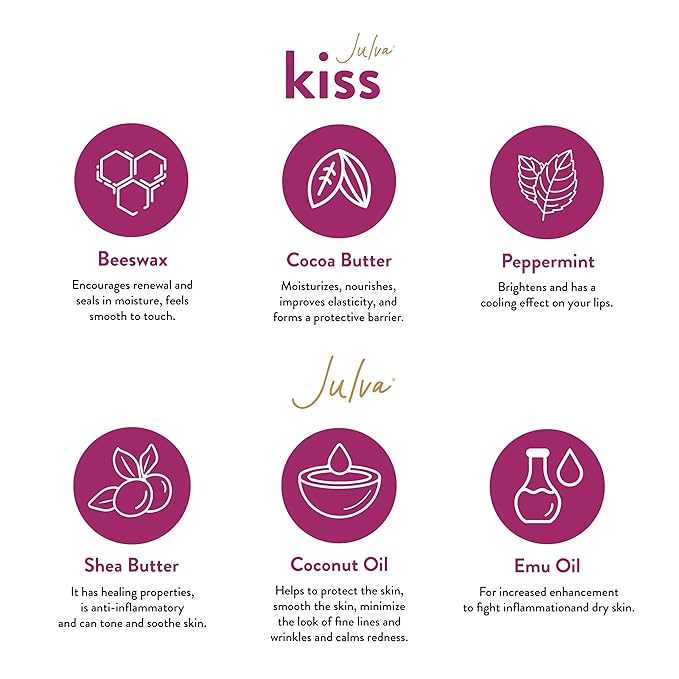 - Julva Kiss - (for the lips on your face) - The beloved formula of the original Julva, reimagined for the lips you show the world. Encourages cell turnover, visibly reduces fine lines, and plumps your kiss. Silky natural moisturizers leave your lips feeling soft and kissable.
