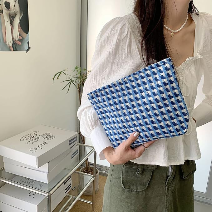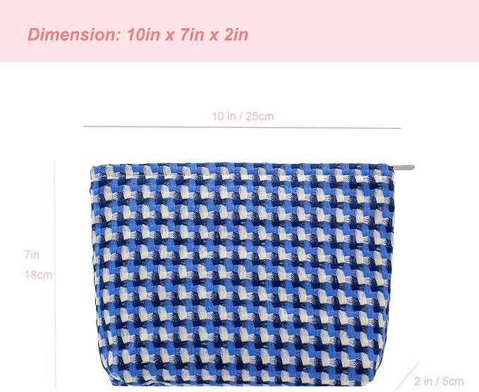 Makeup Bags for Purse Zipper Cosmetic Pouch Large Travel Canvas Make Up Organizer Tool Pouch for Women and Girls,Grid Blue