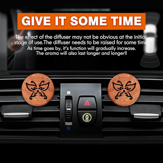 - PACKAGE INCLUDING: 2PCS Rosewood Butterfly Car Essential Oil Diffusers (K-Type)(This product does not contain essential oils). Notice: The wood car diffuser has no fragrance, so whether the essential oil fragrance can last depends entirely on the quality of the essential oil.