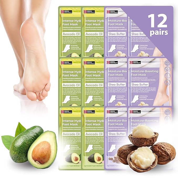 Original Derma Beauty Foot Mask 12 Pairs Shea Butter + Avocado Foot Mask - Foot Masks after Callus Remover Pedicure Supplies