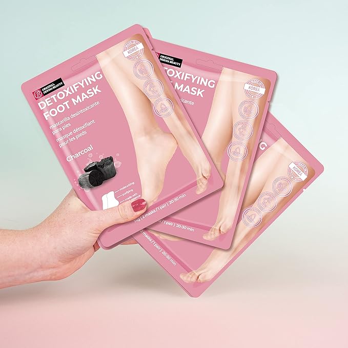 Original Derma Beauty Foot Mask 12 Pairs Detoxifying Charcoal Moisturizing Foot Mask Body Exfoliator Foot Masks Callus Remover Foot Bath Pedicure Supplies for Beauty & Personal Care