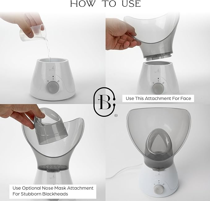 - EASY-TO-USE BEAUTY TOOLS: This steamer face machine heats quickly with PTC technology, providing efficient at-home skincare with controlled steam flow and an auto shut-off for safety. Simply fill the mini spa with water, enjoy your steam experience, and clean and store the unit after use.