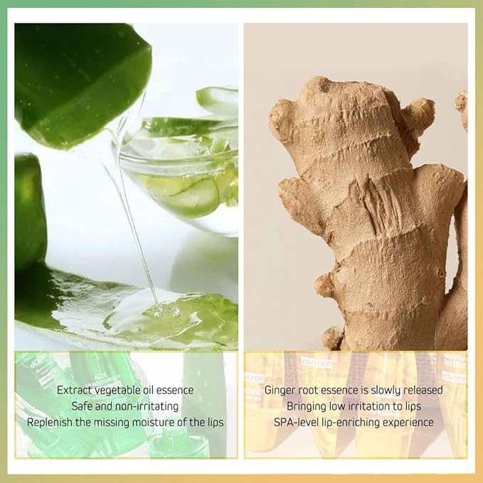 - Natural and Safe -- Natural ingredients gain more favor! Ginger extract can effectively stimulate the vitality of lip cells and plump the lips. Ginger essential oil has a good regulating effect and maintains a stable state of the lips. The aloe vera extracts of the lip oil are gentle and non-irritating, not greasy or sticky, repair lips and prevent chapped lips.
