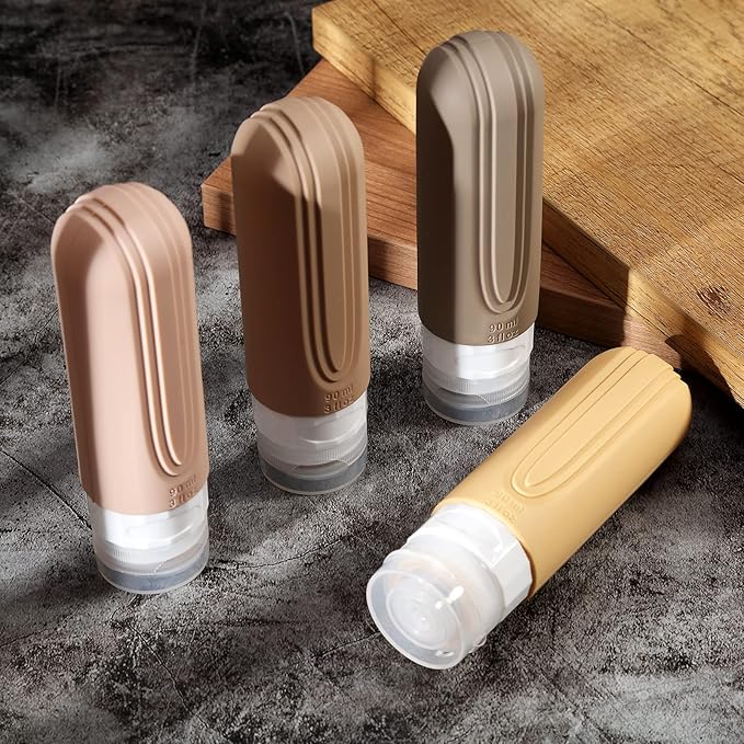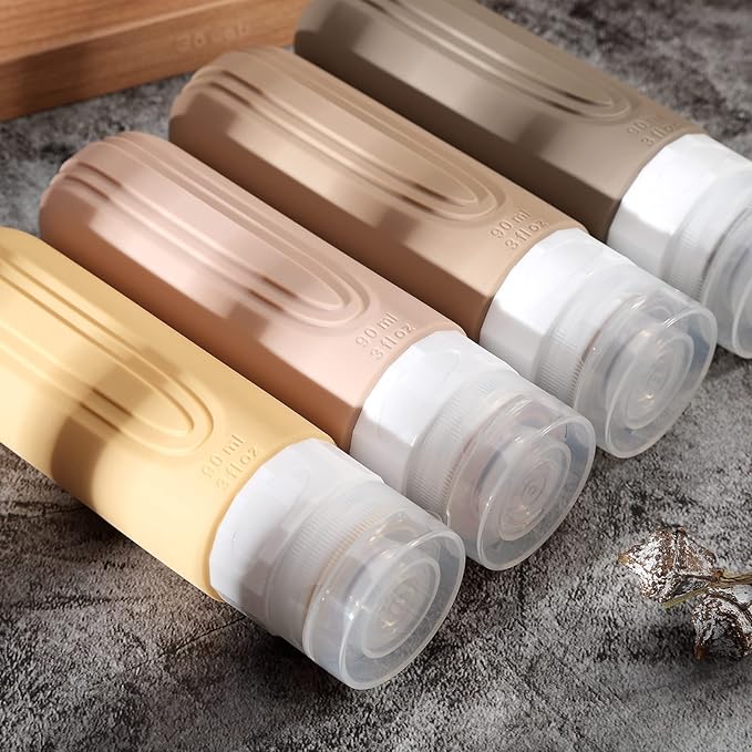 Travel Bottles for Toiletries, Tsa Approved 3oz Travel Size Containers BPA Free Leak Proof Refillable Liquid Silicone Squeezable Travel Accessories for Shampoo Conditioner Lotion (4 Pack)