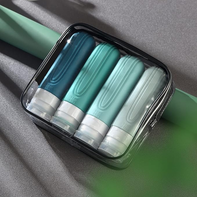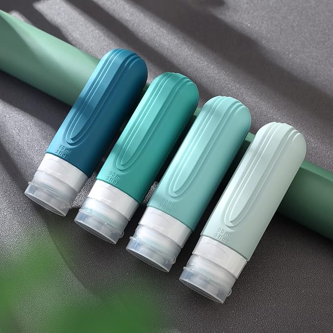 Travel Bottles for Toiletries, Tsa Approved 3oz Travel Size Containers BPA Free Leak Proof Refillable Liquid Silicone Squeezable Travel Accessories for Shampoo Conditioner Lotion (4 Pack)