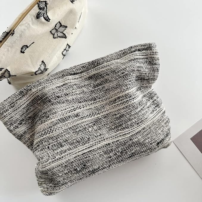 Makeup Bags for Purse Zipper Cosmetic Pouch Large Travel Canvas Make Up Organizer Tool Pouch for Women and Girls,Ripple Grey