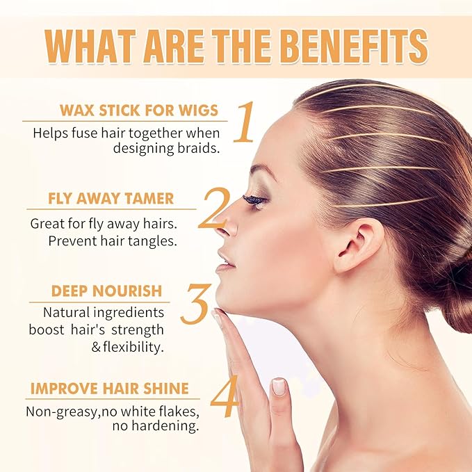 - 【Best Hair Product Set】You get 1x 2.7 oz hair wax stick, 1x 0.5 oz hair finishing stick, 3x hair styling combs and 2x elastic wig bands. This is a great value set that works together to tackle all areas of unruly hair and keep your style smooth all day long