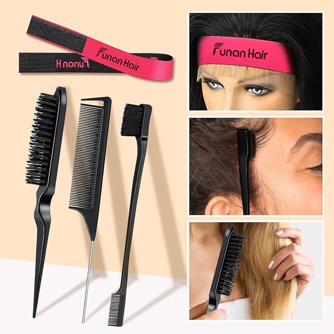 - 【High Quality Hair Styling Tools】The hair styling comb set is ideal for organizing and smoothing edge control, flyaway and baby hair. The elastic band provides secure protection for the wig and keeps it in place, perfect for solving embarrassing situations like your hair falling out