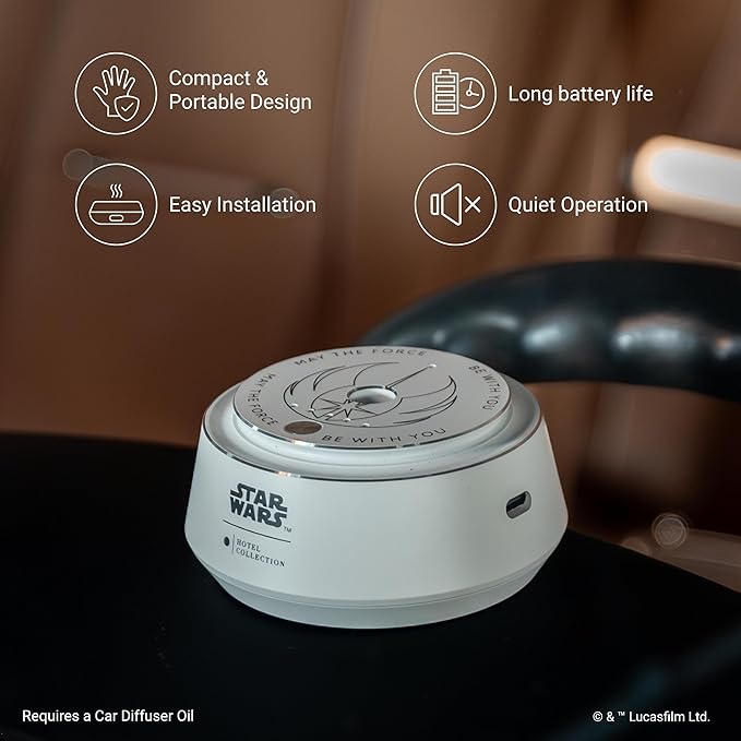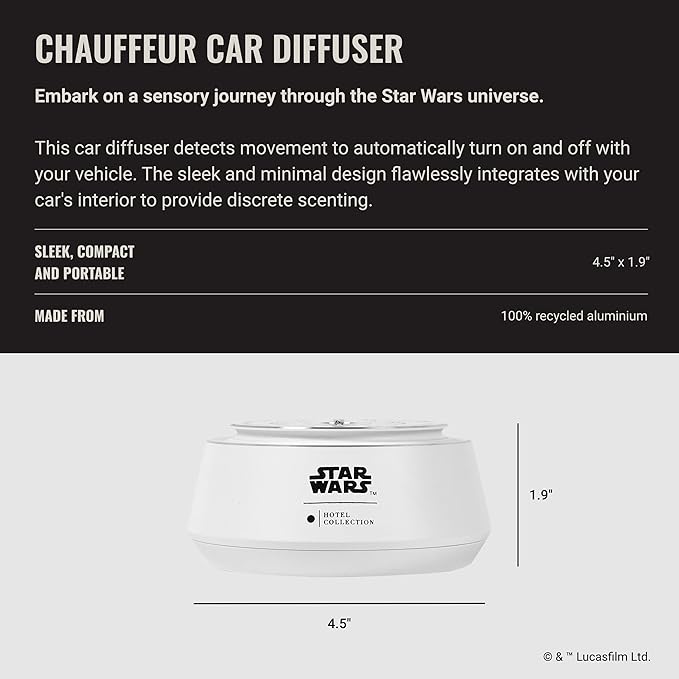 Hotel Collection | Star Wars ™ - Light Side Chauffeur Car Diffuser | Jedi| White Luxury Portable Essential Oil | Aromatherapy Oils Scent Car Diffuser | Auto On/Off Wireless Feature
