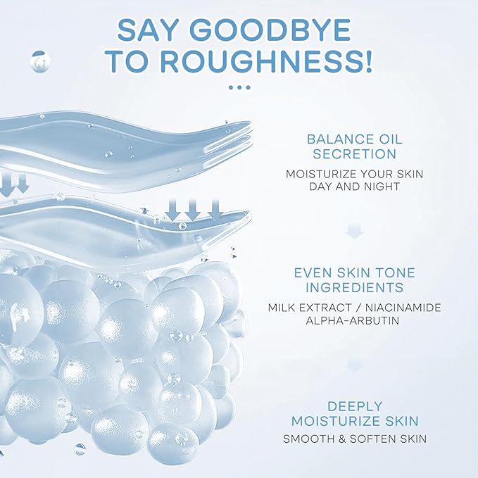 - [Hydrating Skincare Set]: Milk face moisturizer set forms a protective layer on the skin to prevent moisture loss, thereby keeping the skin moist, closing pores, soothing the skin, and gently exfoliating the skin for a smoother, more delicate look